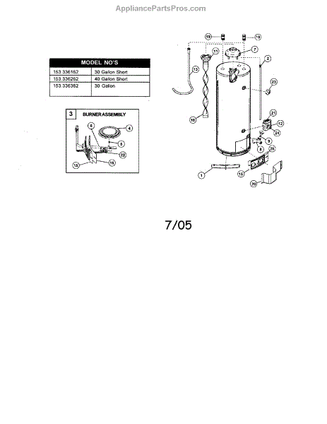 Parts for Kenmore 153.336262 (153336262, 153 336262): Water Heater Parts