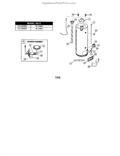 Parts for Kenmore 153.336420 (153336420, 153 336420): Water Heater Parts