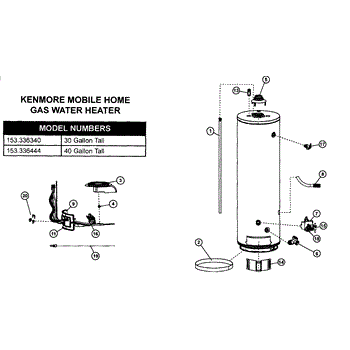 Parts for Kenmore 153.336444 (153336444, 153 336444): Water Heater Parts