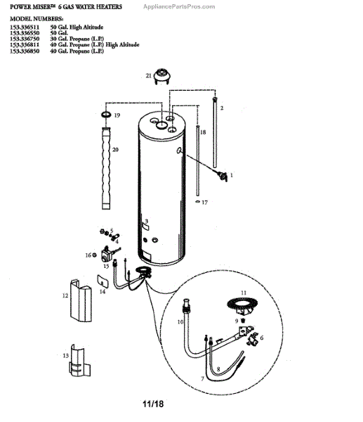Parts for Kenmore 153.336750 (153336750, 153 336750): Water Heater Parts