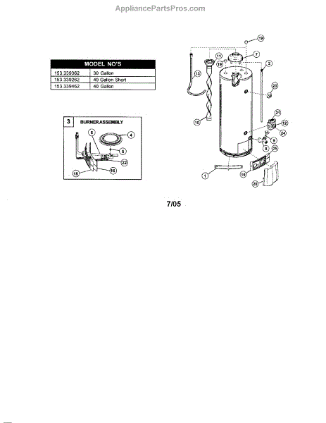 Parts for Kenmore 153.339320 (153339320, 153 339320): Water Heater Parts