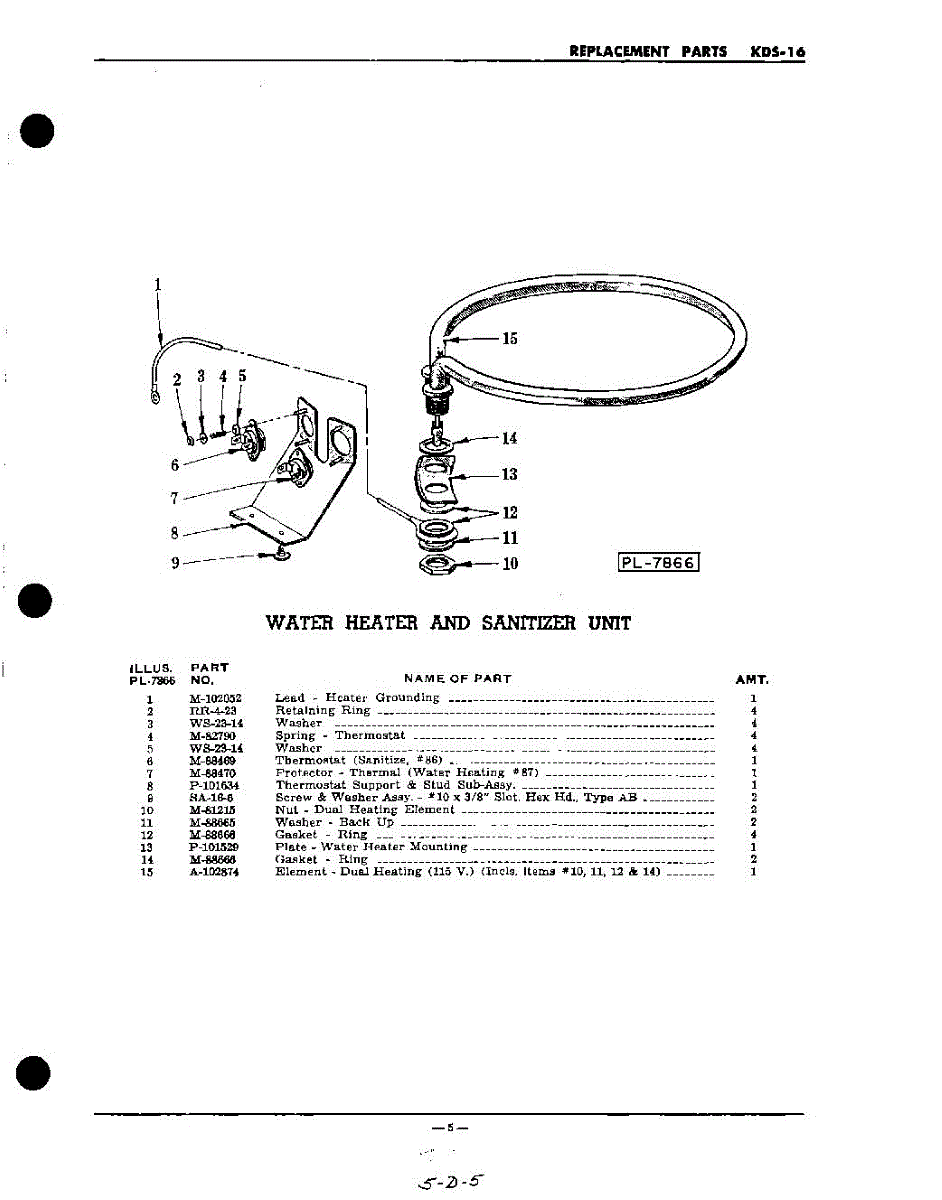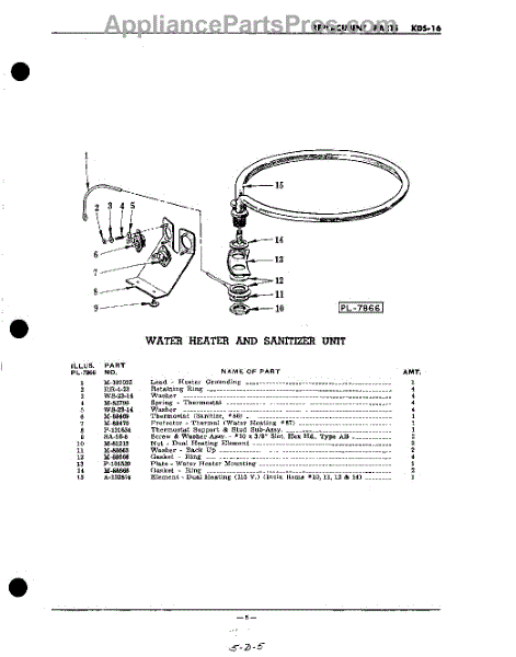 Parts for Kitchenaid KDS16SC: 05 - Water Heater And Sanitizer Parts