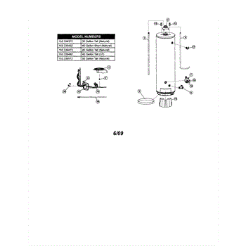 Parts for Kenmore 153.339432 (153339432, 153 339432): Water Heater-40 Gal. Short (Natural) Parts