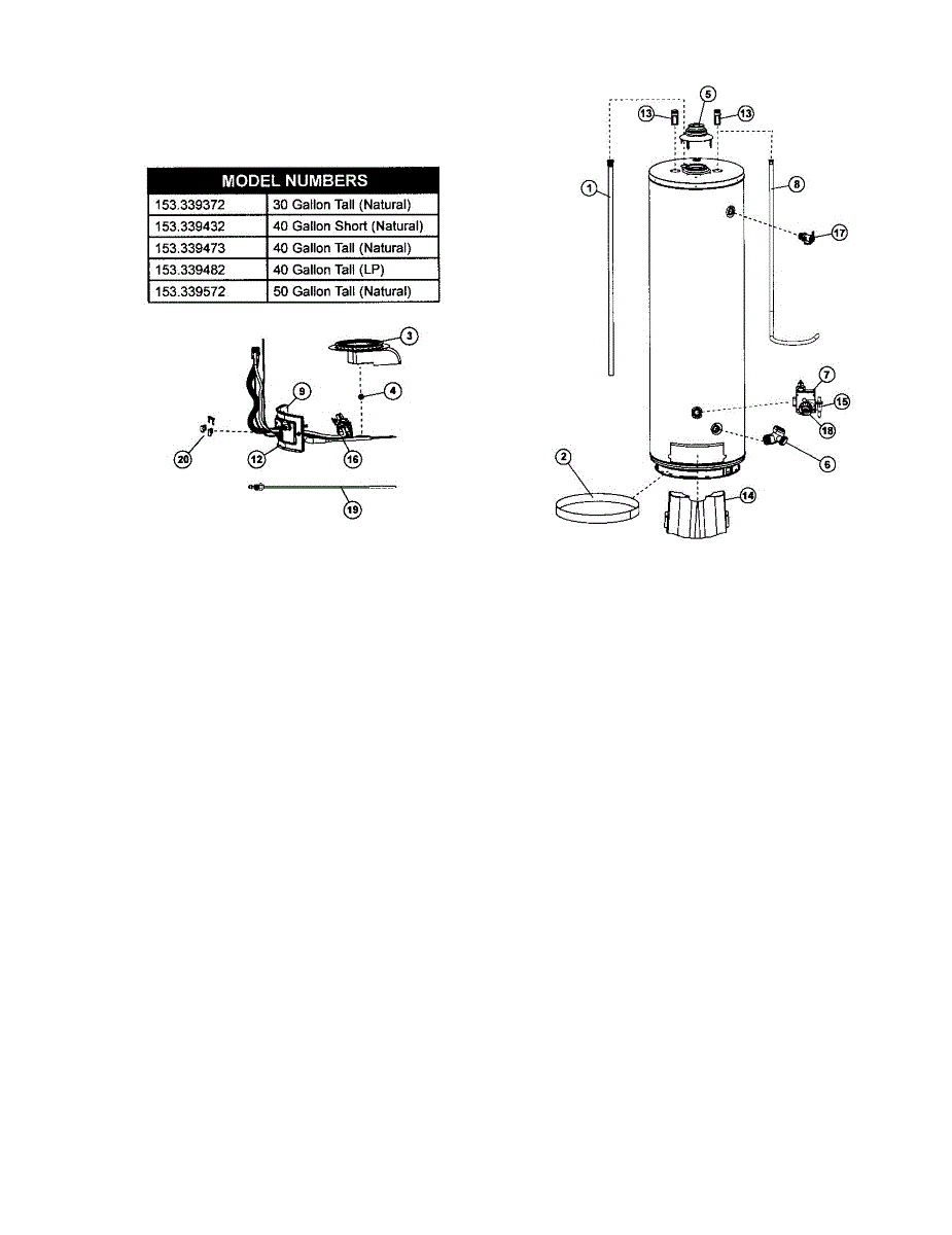 Parts for Kenmore 153.339473 (153339473, 153 339473): Water Heater-40 Gal. Tall (Natural) Parts