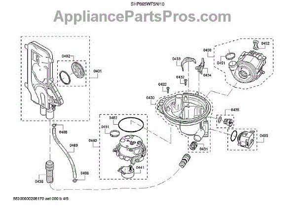 Parts for Bosch SHP865WF5N/10: Water Inlet System / Sump / Heat Pump Parts