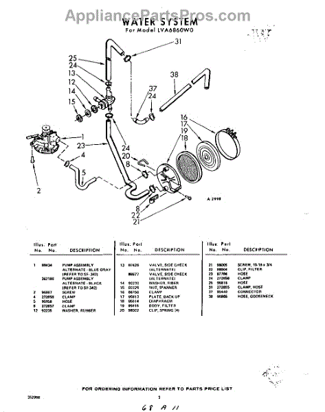 Parts for Whirlpool LVA6860W0: 02 - Water Parts