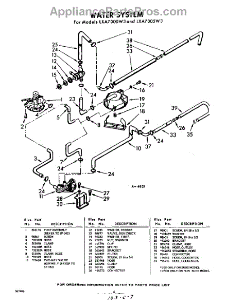 Parts for Whirlpool LXA7005W3: 06 - Water Parts