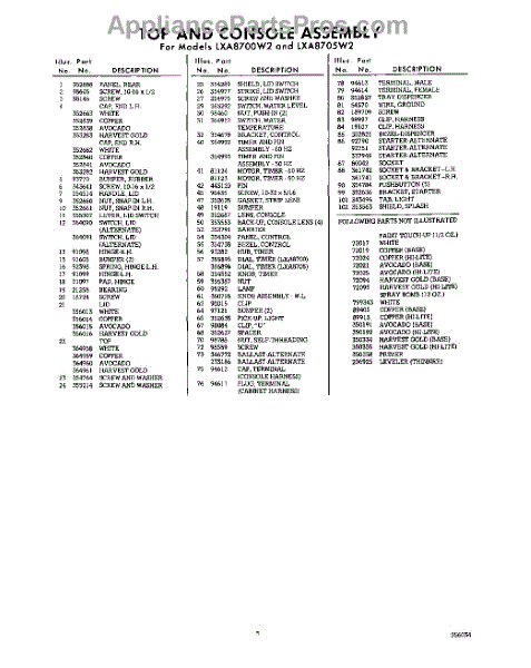 Parts for Whirlpool LXA8700W2: 05 - Water Parts