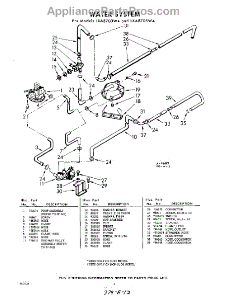 Parts for Whirlpool LXA8700W4: 06 - Water Parts