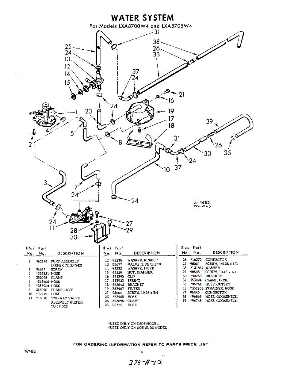 Parts for Whirlpool LXA8705W4: 06 - Water Parts