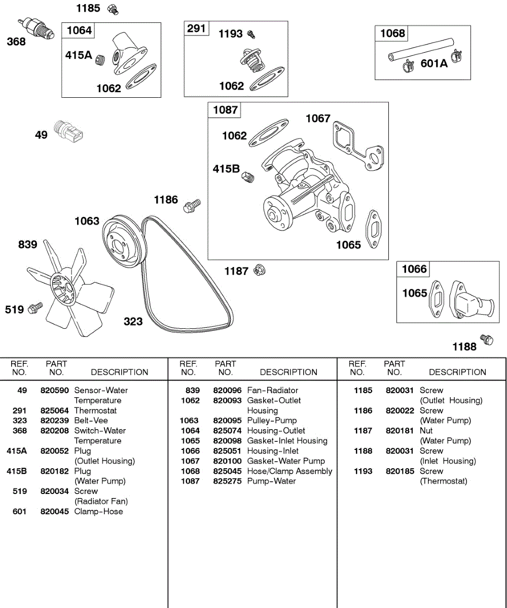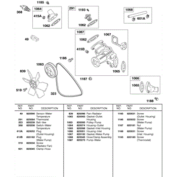 Parts for Briggs & Stratton 437447-0105-99: Water Pump, Fan, Vee Belt Parts