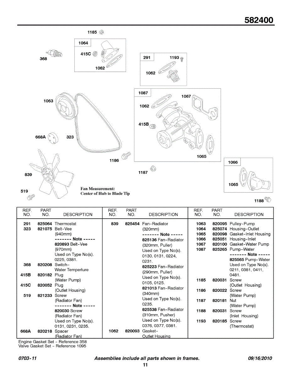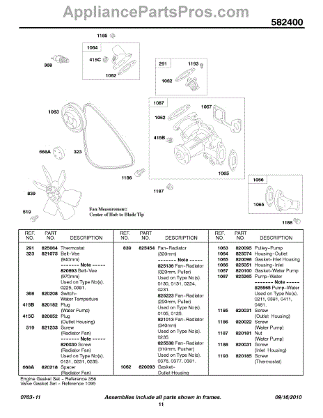 Parts for Briggs & Stratton 582447-0125-A1: Water Pump, Fan Parts