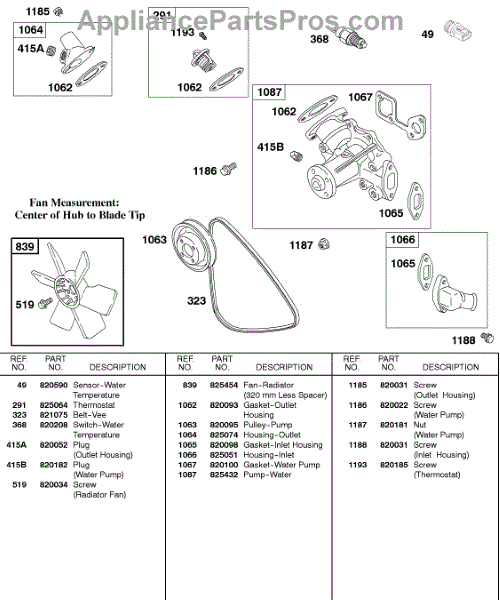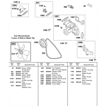 Parts for Briggs & Stratton 583447-0317-E2: Water Pump, Fan, Vee Belt Parts