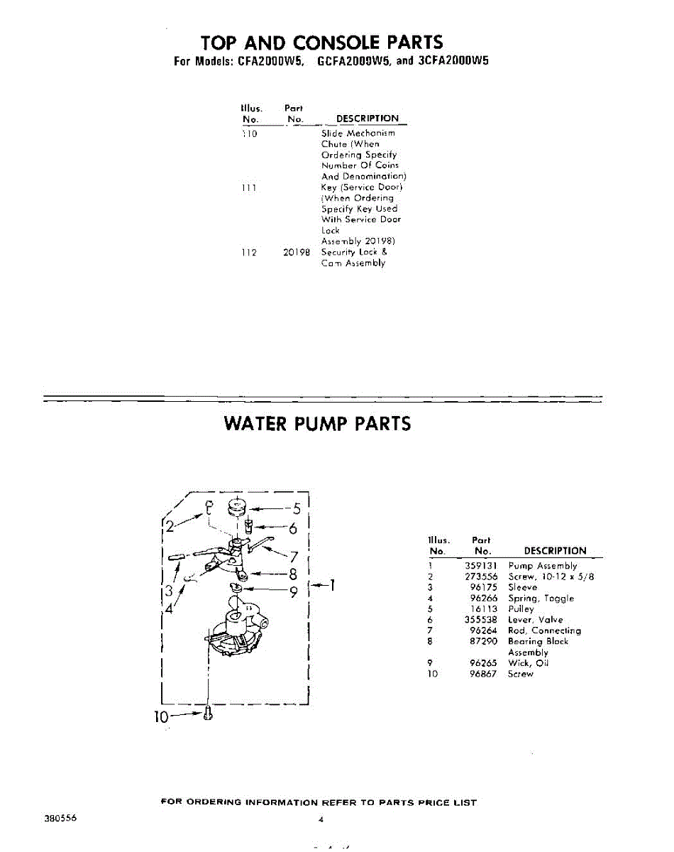 Parts for Whirlpool 3CFA2000W5: 04 - Water Pump Parts