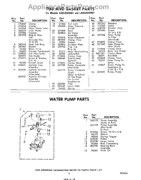 Parts for Whirlpool LA5530XKW1: 03 - Water Pump Parts