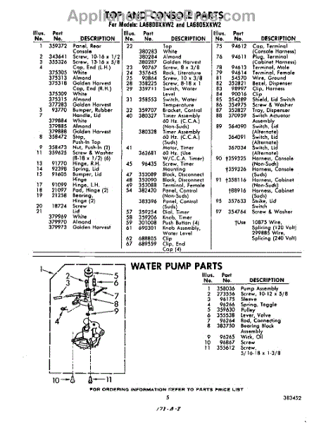 Parts for Whirlpool LA6805XKW2: 05 - Water Pump Parts