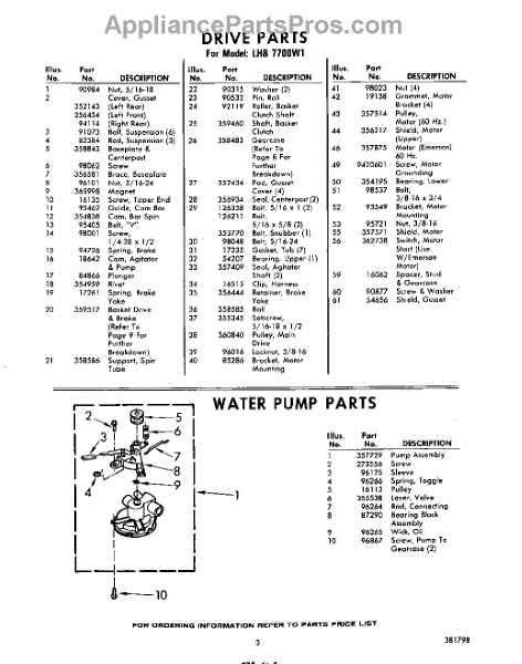 Parts for Whirlpool LHB7700W1: 03 - Water Pump Parts