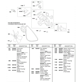 Parts for Briggs & Stratton 522447-0111-E2: Water Pump, Radiator Fan Parts