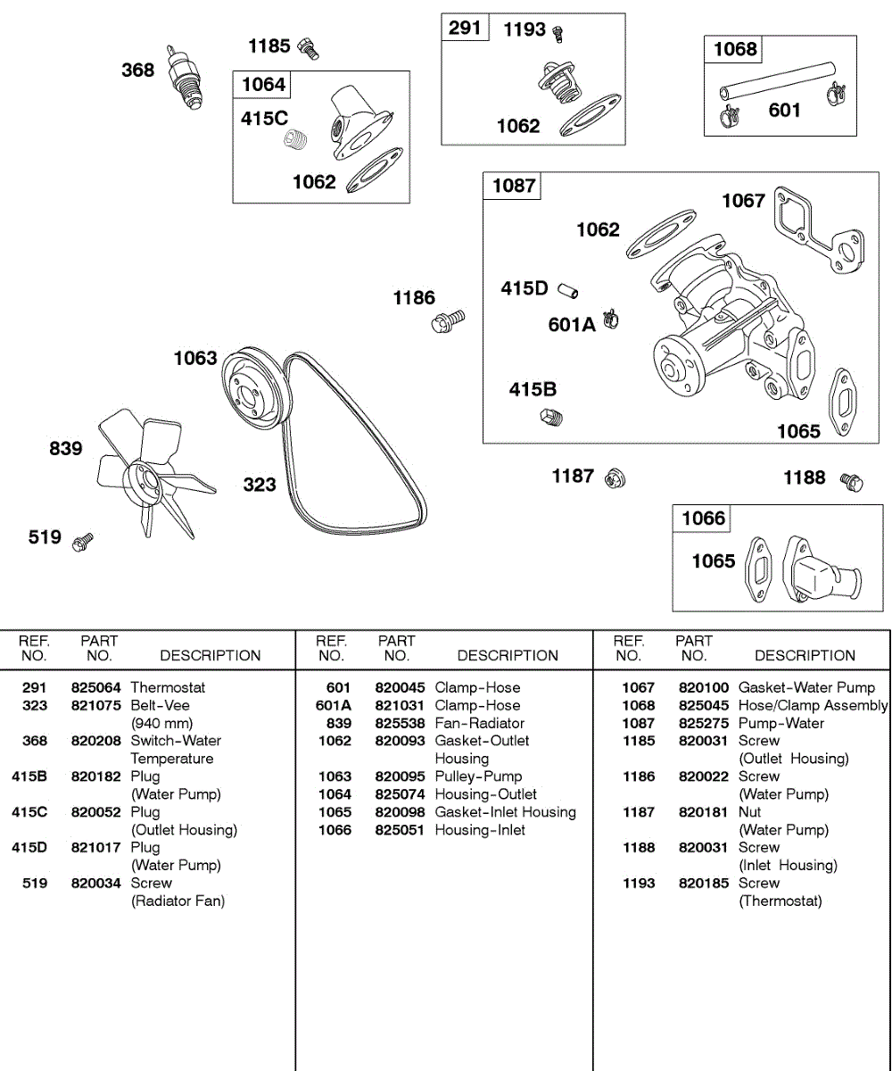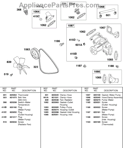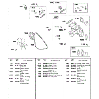 Parts for Briggs & Stratton 581447-0375-E2: Water Pump, Vee Belt, Radiator Fan Parts