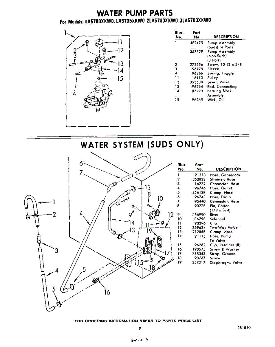 Parts for Whirlpool 3LA5700XKW0: 09 - Water Pump And Water System Parts