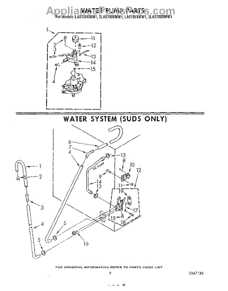 Parts for Whirlpool 3LA5700XMW1: 06 - Water Pump , Water System Parts