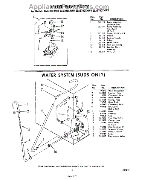 Parts for Whirlpool LA5705XKW0: 09 - Water Pump And Water System Parts