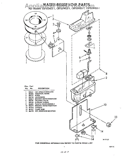 Parts for Whirlpool CEFS5WE31: 07 - Water Reservoir Parts