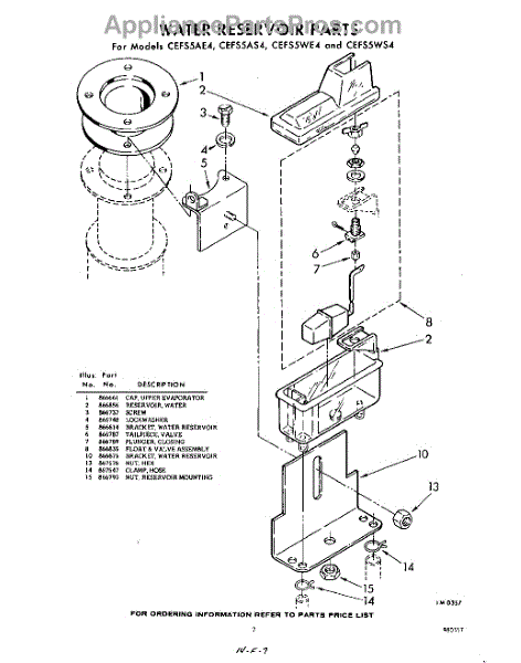 Parts for Whirlpool CEFS5WE4: 07 - Water Reservoir Parts