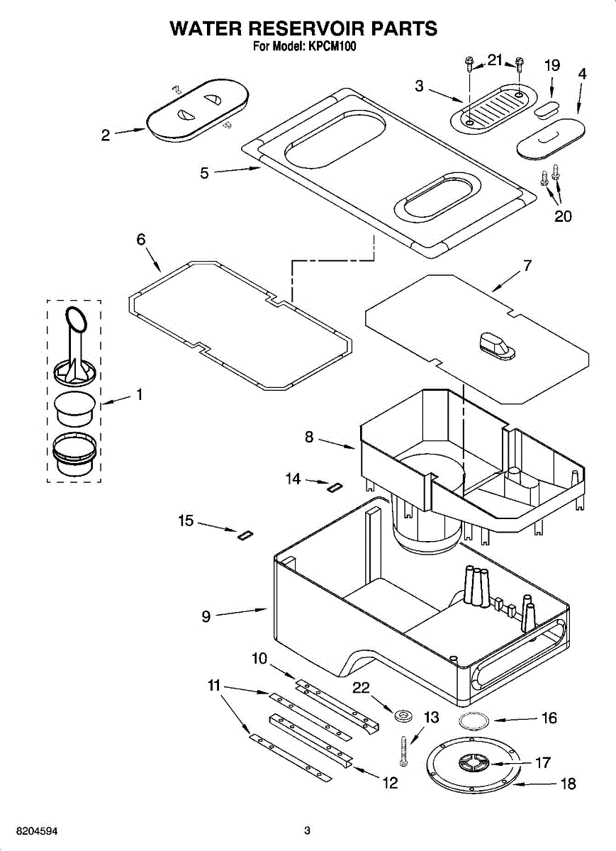 Parts for Kitchenaid KPCM100: 02 - Water Reservoir Parts
