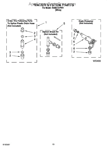 Parts for Roper RAB2121PW1: 09 - Water System Parts, Miscellaneous Parts, Optional Parts (Not Included) Parts