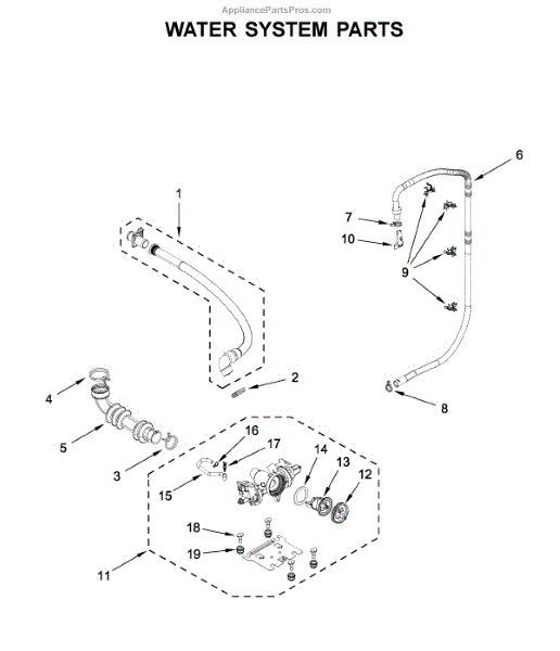 Replacement water hose for your washer. Connects to the water supply and tub assembly. Replace if cracked, leaking, or damaged to restore proper function.