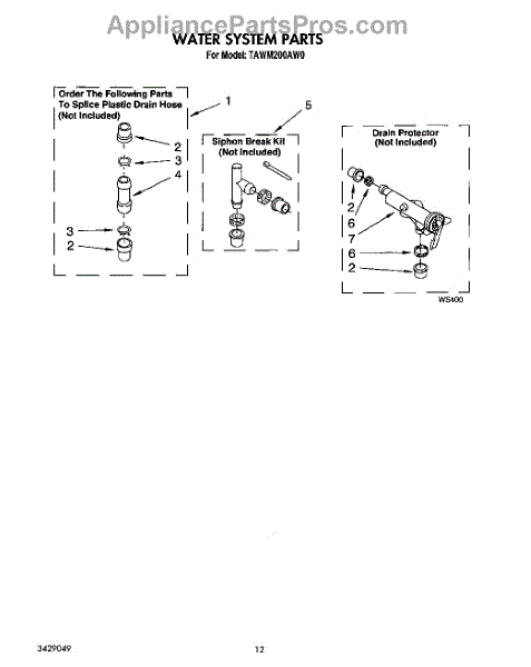 Parts for Estate TAWM200AW0: 09 - Water System Parts
