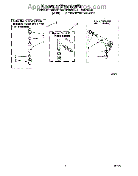 Parts for Estate TAWS700BN0: 10 - Water System Parts