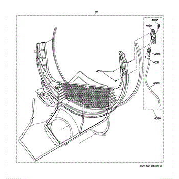 The Trap Duct Assembly is an OEM part for GE dryers. This part directs the airflow from the dryer drum to the exhaust vent. This assembly ensures efficient drying by guiding hot air out of the dryer while collecting lint and debris in the trap, preventing it from clogging the venting system.