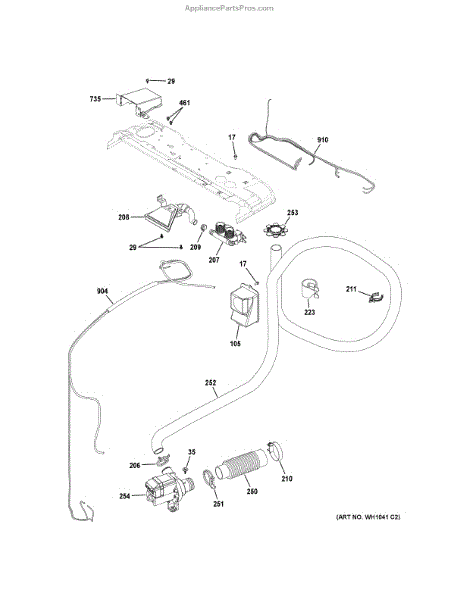 The Pump Drain is an OEM part for GE washing machines. This component is responsible for removing water from the washer drum during the drain cycle, ensuring that the water is efficiently expelled from the machine. The pump drain plays a crucial role in the washing machine's ability to complete its cycles and maintain optimal performance.