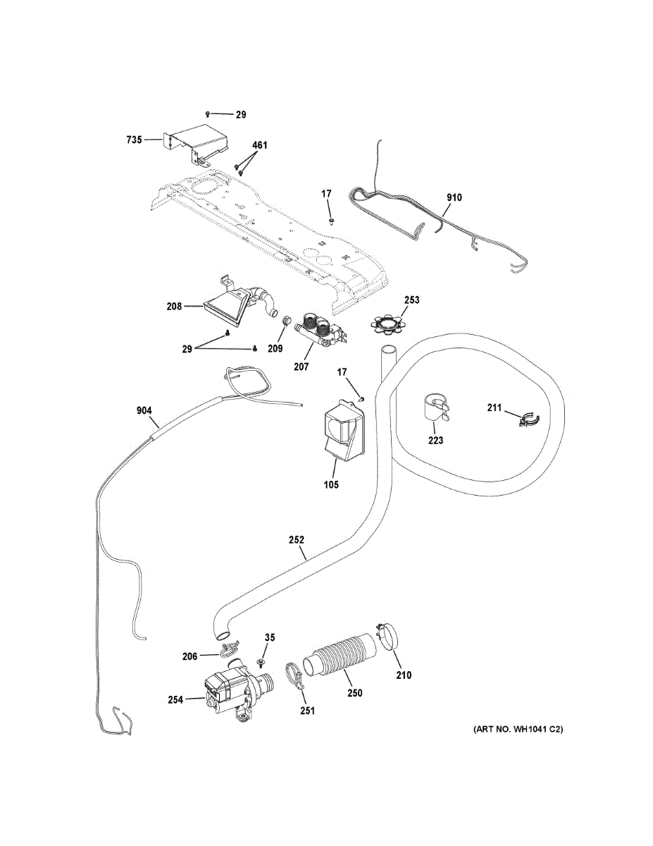 The Pump Drain is an OEM part for GE washing machines. This component is responsible for removing water from the washer drum during the drain cycle, ensuring that the water is efficiently expelled from the machine. The pump drain plays a crucial role in the washing machine's ability to complete its cycles and maintain optimal performance.