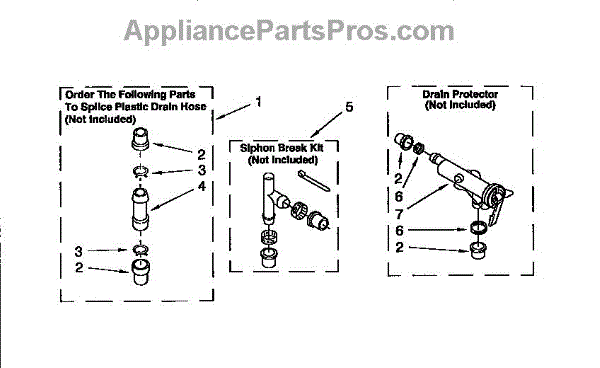 Connects the drain hose to the washer drain outlet. Replace this coupling kit if cracked, broken, or leaking to restore a secure connection.
