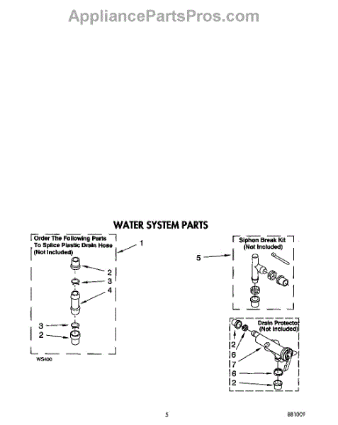 • Stops backflow/siphoning from the household drain into the dishwasher