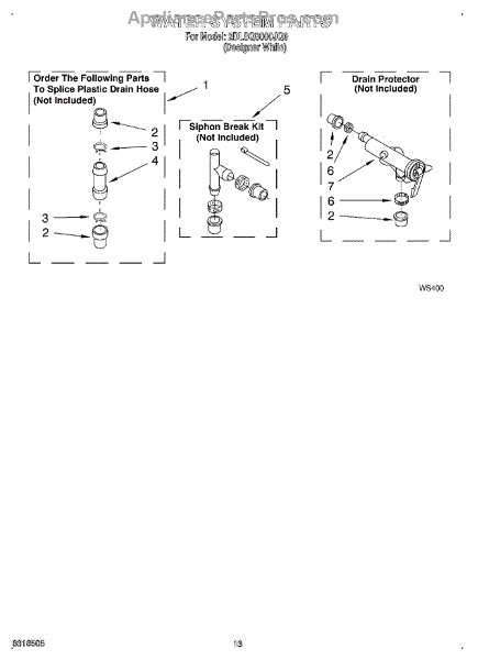 • Stops backflow/siphoning from the household drain into the dishwasher
