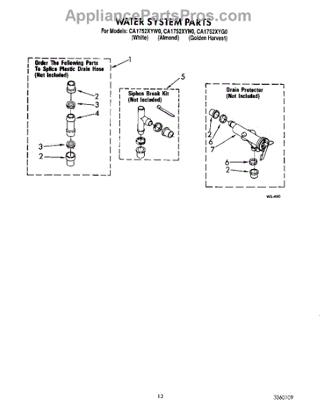 Parts for Whirlpool CA1752XYN0: 10 - Water System Parts