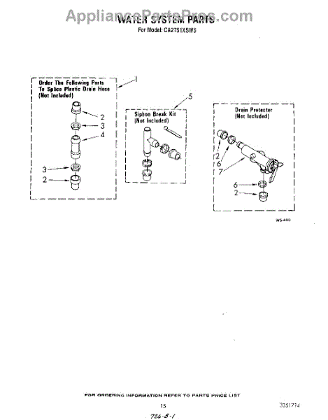Parts for Whirlpool CA2751XSW5: 13 - Water System Parts