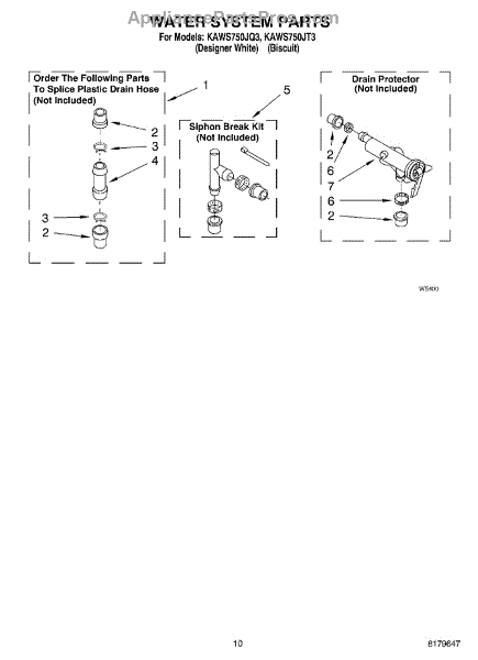 Parts for Kitchenaid KAWS750JQ3: 07 - Water System Parts