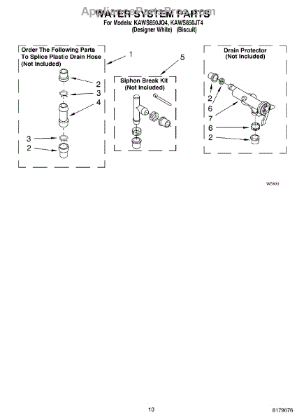 Parts for Kitchenaid KAWS850JT4: 07 - Water System Parts