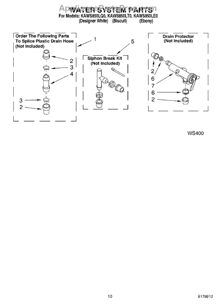 Parts for Kitchenaid KAWS850LT0: 07 - Water System Parts