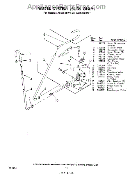 Parts for Whirlpool LA5535XKW1: 12 - Water System Parts
