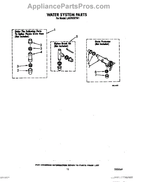 Parts for Whirlpool LA5700XTF1: 11 - Water System Parts