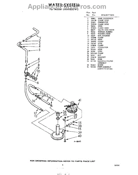 Parts for Whirlpool LAA9800W2: 06 - Water System Parts