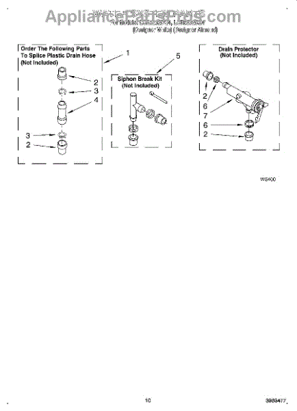 • Stops backflow/siphoning from the household drain into the dishwasher