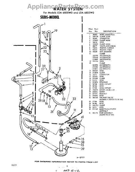 Parts for Whirlpool LDA6805W0: 06 - Water System Parts
