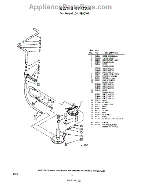 Parts for Whirlpool LDA9800W1: 06 - Water System Parts